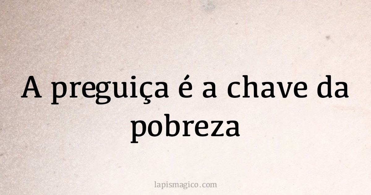 / A preguiça é a chave da pobreza